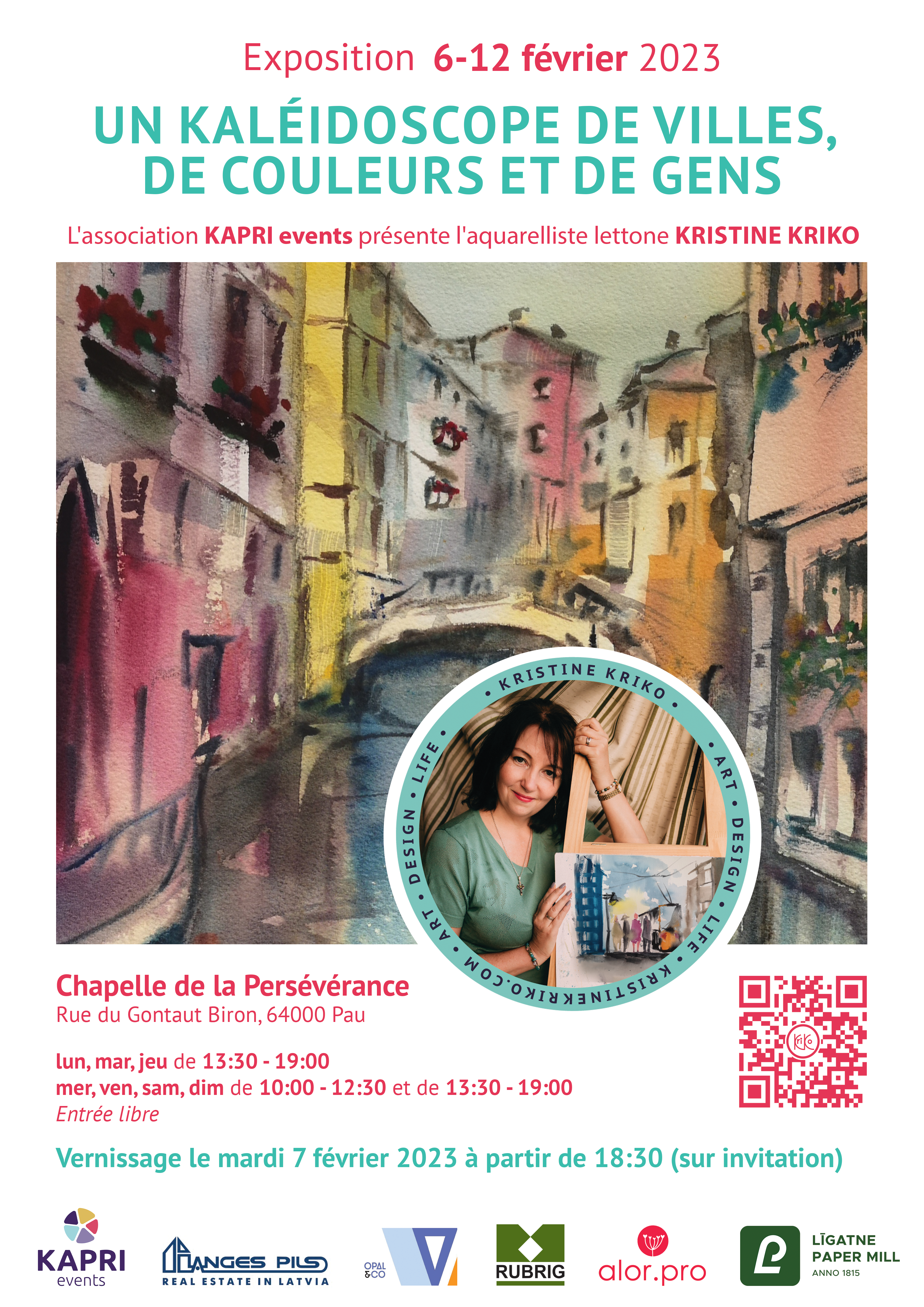 - Aquarelle «Un kaléidoscope de villes, de couleurs et de gens» - 06-12 Février 2023 - Chapelle de la Persévérance, Pau (64) France