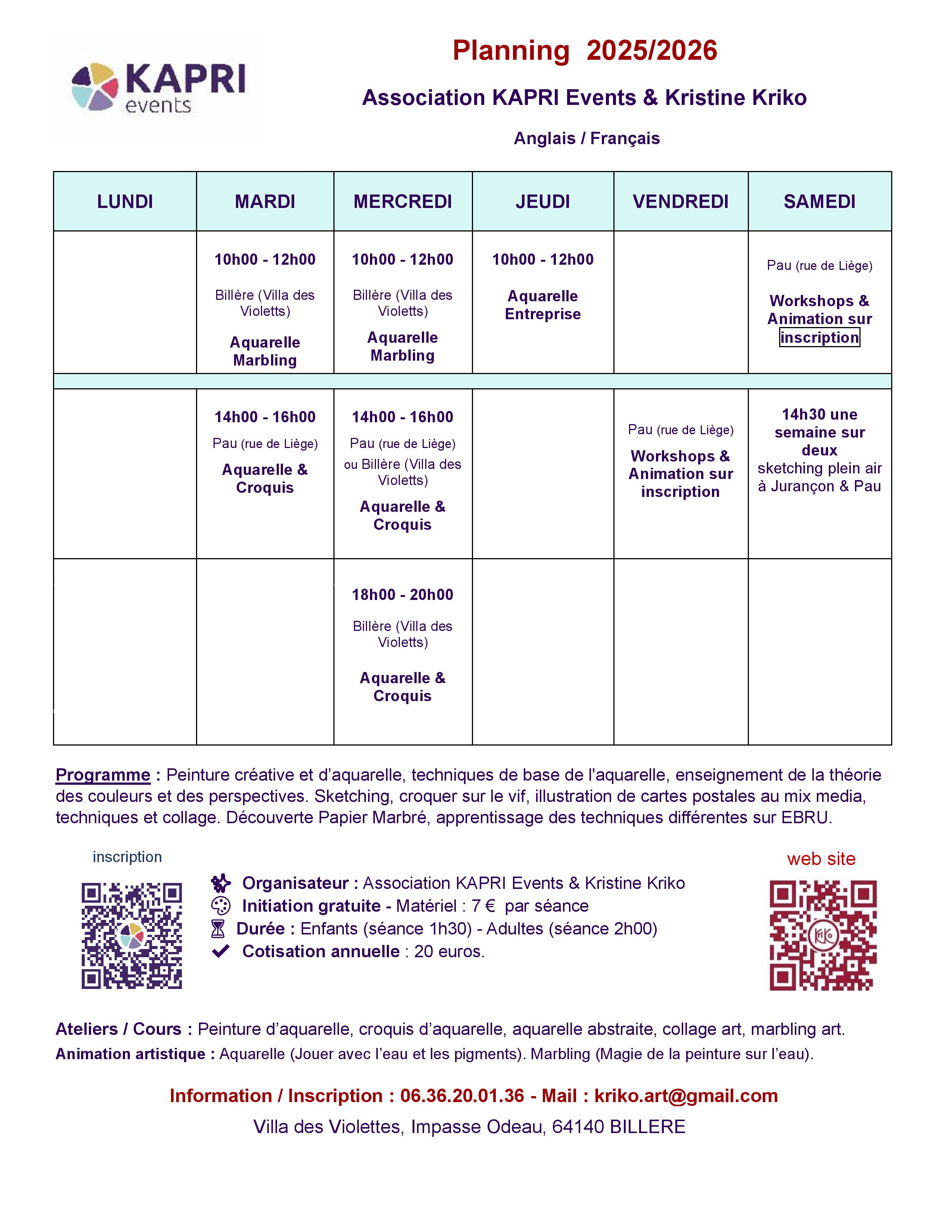 🎨 Mercredis — 10h00 à Billère · 14h00 à Pau · 18h00 à Billère